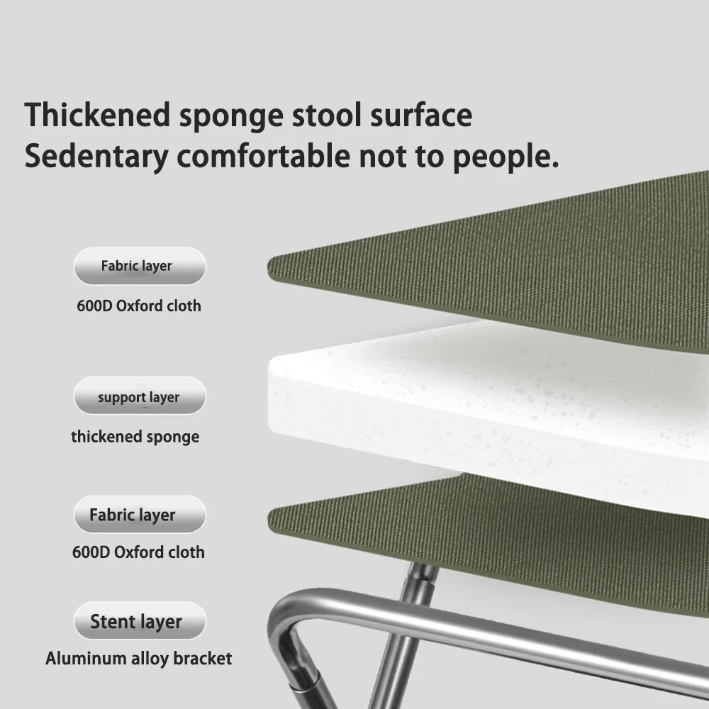 Weighing just 325 g, the stool is lightweight without compromising performance. Its reinforced aluminium alloy frame and durable 600D Oxford fabric provide stable, comfortable seating for camping, hiking, fishing, picnics, or waiting in line. Whether you’re deep in nature or taking a quick rest on the go, this compact stool is always ready.