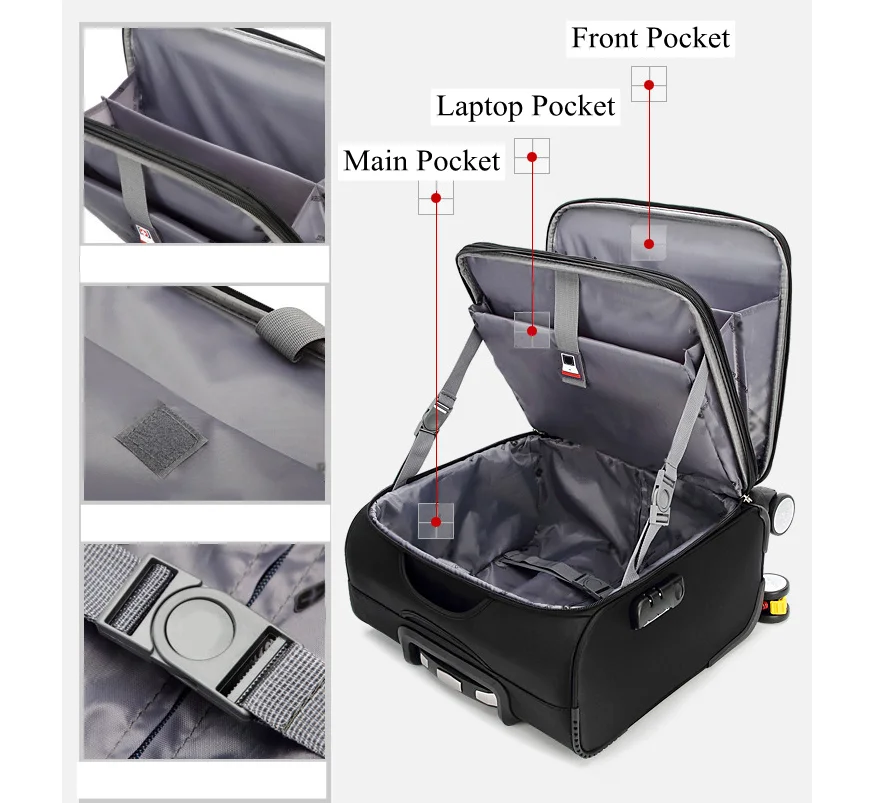 Crafted from tough Oxford fabric, this rolling suitcase is built to handle frequent travel while remaining lightweight and easy to maneuver. The smooth 360° spinner wheels glide effortlessly through airports, train stations, and city streets, reducing strain and making movement feel natural.